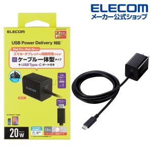 - 【互換品】エレコム 充電器 Type-C USB-C 20W USB PD対応 ケーブル一体型 1.5m PSE認証品 GaN採用 折りたたみ式プラグ し