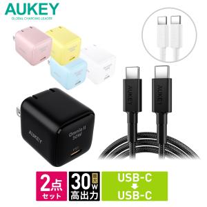 - 超小型USB充電器+USB-Cケーブルセット 30W充電器 ACアダプター C-C 急速充電 1m 480Mbps AUKEY オーキー CCB-52