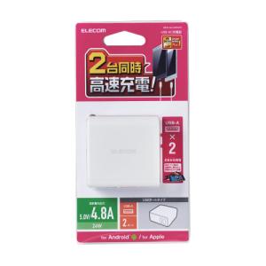 - エレコム スマートフォン・タブレット用AC充電器 4.8A出力 USB-Aメス2ポート オマカ メーカー在庫品