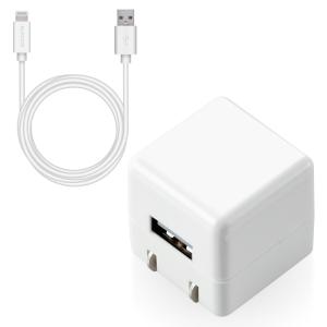 - エレコム iPhone充電器 2.4A出力 ライトニングケーブル 付属 1m 高耐久 断線しにくい ホワイトフェイス MPA-ACL08WF