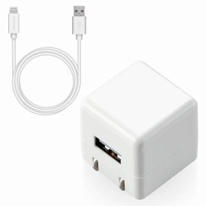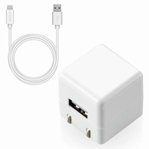 - エレコム elecom iPhone充電器 iPad充電器 1m Lightning AC ケーブル同梱 ホワイト コンパクト 小型 キューブ シンプル