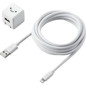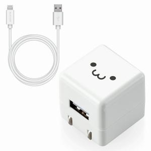 - エレコム elecom iPhone充電器 iPad充電器 1m Lightning AC ケーブル同梱 ホワイトフェイス コンパクト 小型 キューブ かわいい