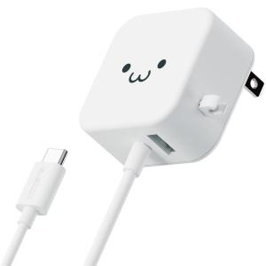- エレコム ELECOM AC充電器/USB-C/ケーブル一体型/USB-Aメス1ポート ホワイトフェイス