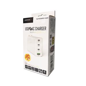 - HIDISC GaN (窒化ガリウム)採用PD3.0 Type-C+USB-A 100W AC充電器 アダプター ML-PDUS4PG100WH