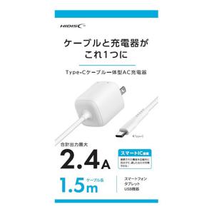 - HIDISC Type-Cケーブル一体型AC充電器 充電コード忘れの心配なし ホワイト HD-AC12WC15WH