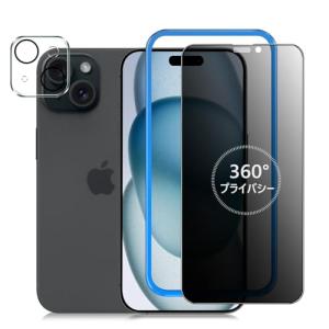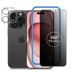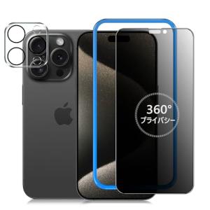 - 360°覗き見防止iPhone15ProMax ガラスフィルム 覗き見防止 360度 + カメラフィルム iphone 15 Pro Max 保