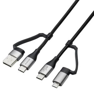 - エレコム 4in1 充電ケーブル ( USB Type C + USB A to USB Type C + microUSB ) PD 60W対応 ケーブル 2m MPA-AMBCC20BK