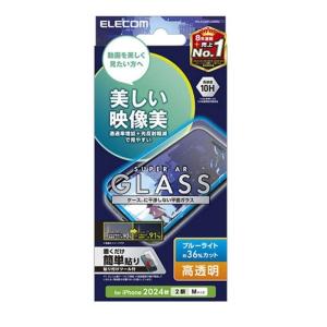 - エレコム iPhone 16 Pro ガラスフィルム 動画映え 高透明 ブルーライトカット PM-A24CFLGARBL
