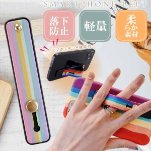 - スマホバンド スマホベルト No410 ストライプレインボー2 スマートホン落下防止 ホールドリング替わり スマホスタンドバンド Rk774