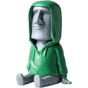- スマホ スタンド モアイ ホルダー 卓上 おもしろ かわいい スマートフォン 携帯 電話(灰色モアイ/緑パーカー)