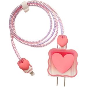 - USB-C充電器カバー アップル用 18W/20W クリアソフト 3Dラブハートデザイン アイホン 11-14(ピンク5点セット)