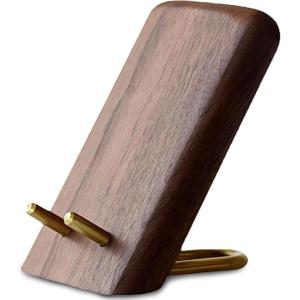 - 木製 スマホスタンド 卓上 ウォールナット インテリア おしゃれ 縦置き 横置き 充電対応 (ブラウン)