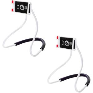 - 首掛け式 スマホホルダー 2個セット ハンズフリー スマホスタンド 自撮り・配信に最適 寝ながら使える 多機能 携帯ホルダー (ホワイト)