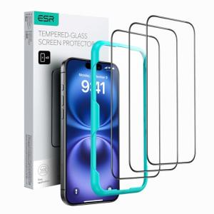 - 3秒で完成・秒貼革命 ESR ガラスフィルム iPhone 17 用 3枚入り 9H強化ガラス 米軍MIL規格 いphone16pro保護フィ