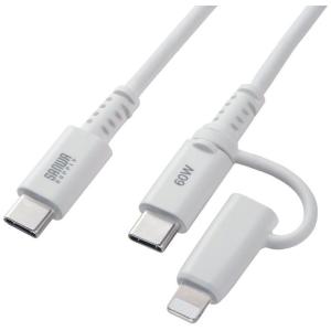 - サンワサプライ USB-C-ライトニング 変換アダプタ PD60W MFi正規認証品 紛失防止 ストラップ付 ホワイト AD-USB30LCFW