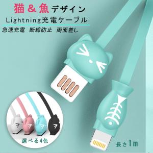 - iPhone 充電 ケーブル 猫&魚デザイン 断線しにくい 1m ライトニングケーブル 2.4A急速充電 iPad iPhone13 iPhone12 USBケーブル Lightning Type-C Android
