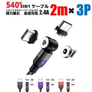 - 充電ケーブル iphone マグネット 式 3in1 2m 2本セットmicro type-c 充電 高速 データ転送 3a 急速 15w 360 ライトニング