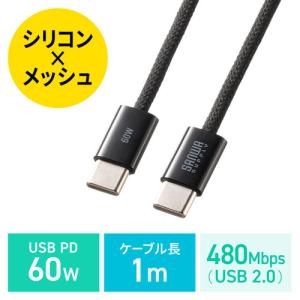 - サンワサプライ KU20-NM15K ブラック ナイロンメッシュUSBケーブル 1.5m