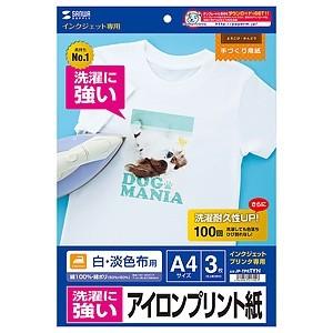 - サンワサプライ 洗濯に強いアイロンプリント紙 インクジェット専用 白・淡色布用 A4サイズ 3シート入 JP-TPRTYN