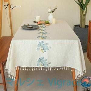 - テーブルクロス 140×300cm 北欧 田園風 綿麻 刺繍 長方形 高級感 食卓カバー お手入れ簡単