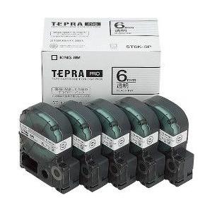 - キングジム テプラPROテープエコパック 透明/黒文字 6mm ST6K-5P 目安在庫=○