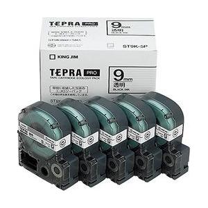 - キングジム テプラPROテープエコパック 透明/黒文字 9mm ST9K-5P 目安在庫=○