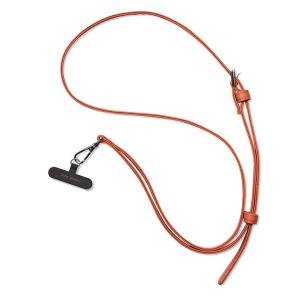 - スマホショルダー ストラップホルダー オレンジ PU レザー iPhone Android スマホ 携帯 ショルダー ネック ストラップ 斜め掛け
