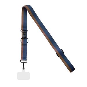 - スマホ ショルダー ストラップ ブラウン x ネイビー 全機種対応 iPhone Android 長さ調節可能 スマホ ベルト ネック ホルダー