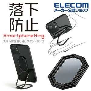 - エレコム スマートフォン 用 スタンドリング スマホ背面貼付け 落下防止 スマホ 360度回転 ブラック┃P-STRWBK
