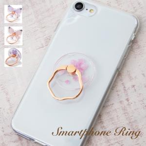 - ホールドリング スマホリング スマートフォンリング 透明 クリア 生花 スマートフォンリング 押し花×クリア SAR0097 ゴールド シルバー ピンクゴールド 人気