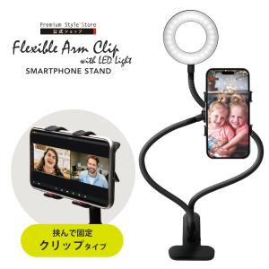 - スマホスタンド スマホホルダー アームクリップ LEDライト付き ブラック 黒 くねくね フレキシブル フレキシブルアーム クリップ 挟む