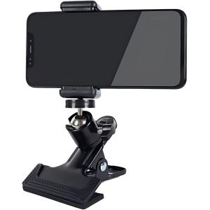 - 車 スマホホルダー サンバイザー クリップ式 360度 無段階 角度調整 後部座席 デスク テーブル に取付可能(ブラック)