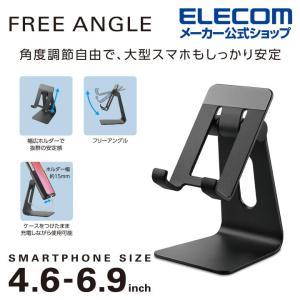 - エレコム スマートフォン 用 スタンド アルミ製 スマホスタンド ケーブル差込可能 4.6〜6.9インチ対応 ブラック P-DSCHALBKN