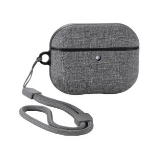 - AirPods Pro 3 ケース MagSafe対応 ファブリック調 TPU 耐衝撃 ストラップ付 落下防止 グレー