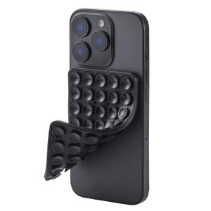 - スマホホルダー 両面吸盤 全機種対応 強力固定 動画視聴 自撮り 壁鏡ガラス貼付 シリコン コンパクト TakoPita ブラック