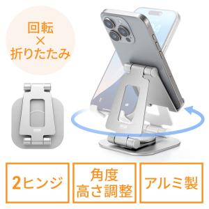 - スマホスタンド 回転 折りたたみ アルミ製 無段階 角度調整 2関節 スマートフォンスタンド Switch シルバー EZ2-STN083S 爆買