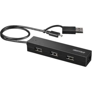 - バッファロー(BUFFALO) BSH4UMB04BK ブラック タブレット・スマホ用 USB2.0 4ポートハブ 変換アダプター付