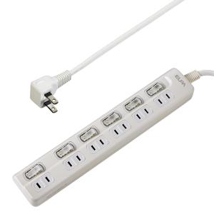 - エルパ(ELPA) 電源タップ 6個口 2m 個別スイッチ 節電 雷ガード 横差し 延長コード 集中スイッチ LEDランプ 省エネ 火災防止 トラッキ