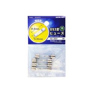- 【メール便選択可】オーム電機 DZ-GF15 ガラス管ヒューズ 15A-250V 4本入 04-1697