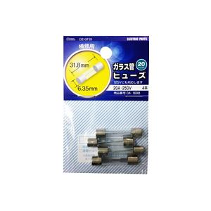 - 【メール便選択可】オーム電機 DZ-GF20 ガラス管ヒューズ 20A-250V 4本入 04-1698