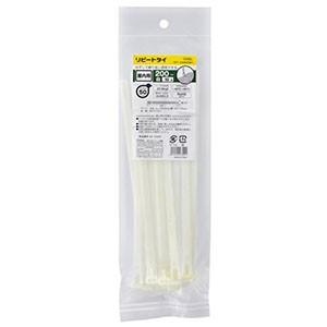 - 【メール便選択可】オーム電機 RPT-200W10WH リピートタイ 200mm 白 10本入 04-3302