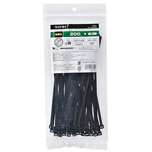 - 【メール便選択可】オーム電機 WLT-200W50BK ワイドタイ 耐候 200mm 50本入 黒 04-3330