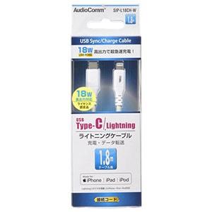 - 【メール便選択可】オーム電機 AudioComm Type-C/ライトニングケーブル 1.8m 01-7123 SIP-L18CH-W