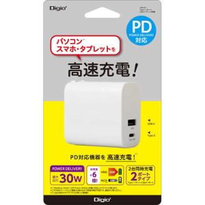 - ナカバヤシ 30W PD充電対応 USBType-C 1ポート/USB-A 1ポート充電器 [2ポート/USB Power Delivery対応] JYUACU07W
