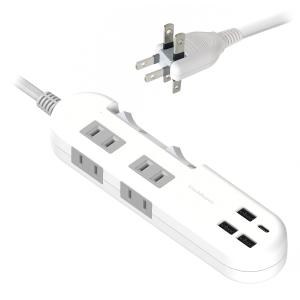 - カシムラ 4コンセント-3USB−A/1USB Type-C 4.8A 自動識別 1.2m スイッチ ホワイト リバーシブルUSB 100?24