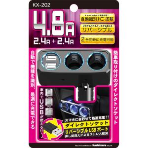 - カシムラ KX-202 2連ダイレクトソケット 2リバーシブルUSB自動判定 4.8A KX-202
