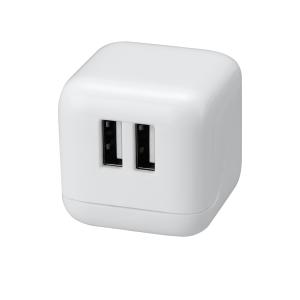 - グリーンハウス キューブ型AC-USB アダプタ 2ポート 2.1A ホワイト GH-AC-U2CW