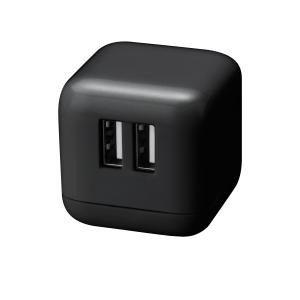 - グリーンハウス キューブ型AC-USB アダプタ 2ポート 2.1A ブラック GH-AC-U2CK