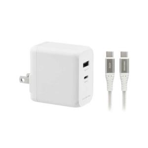 - グリーンハウス USBAC充電器 2ポート 65W USB TypeCケーブル付きホワイト [USB Power Delivery対応 /2ポート /GaN(窒化ガリウム) 採用] GH-ACU2GC-WH