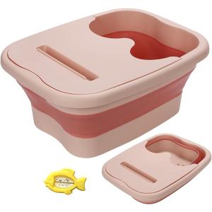 - 足湯 バケツ フットバス 足湯バケツ 泡脚桶 足浴バケツ 折畳み 足洗いバケツ 足湯器 蓋付き 保温 折りたたみバケツ 水温計(ピンク)